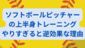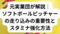ソフトボールのピッチャーにとって、上半身のトレーニングは必要なのか悩む人は多いと思います。「筋トレをすれば球速が上がるのでは?」と考える人も多いですが、やり方を間違えると逆効果になることもあります。私自身も実業団に入った当初は、とにかく筋ト...