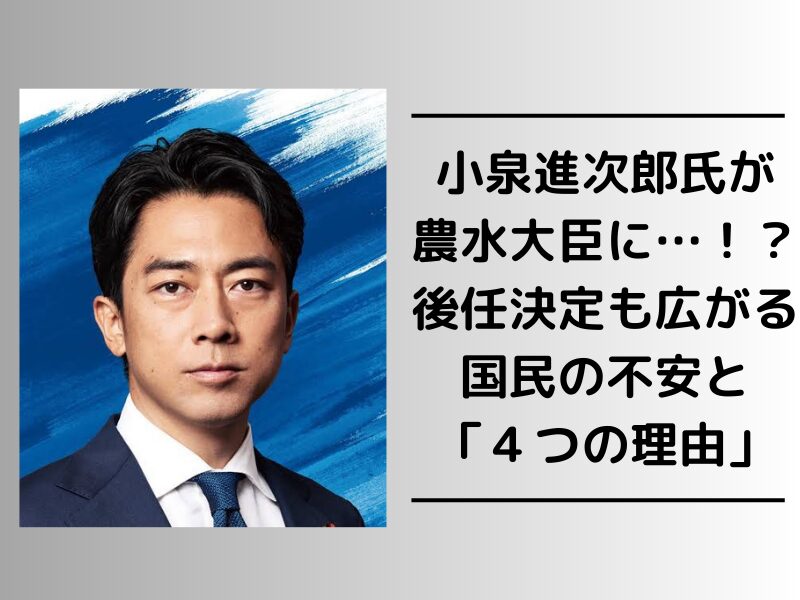 江藤拓・農林水産大臣が更送され、その後任に指名されたのは、あの小泉進次郎氏。環境大臣を経験し、メディア露出も多い彼の登場に「期待」よりも「不安」が広がっています。