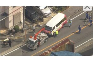 50代女性教諭と園児たちは軽い怪我で全員病院に搬送、事故現場では住宅のフェンスに突っ込んでいることから、運転手は心不全または突然の体調不良が原因だと思われる。