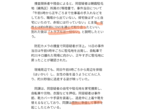 事件当初は「面識はない」と言い張っていた被害者だが、大津容疑者の取り調べで「交際関係」であったことがわかりました。