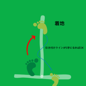 真っ直ぐ着地できるように着地位置から少し長めに線を引く